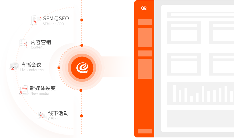 集成搜索引擎SEM、SEO、內(nèi)容營銷、直播、新媒體裂變、線下活動等營銷工具,助力企業(yè)大數(shù)據(jù)獲客;
